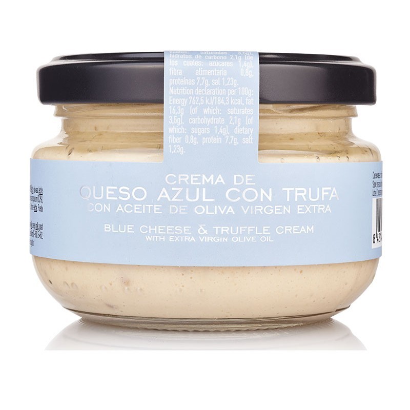 Deliciosa crema de queso azul con trufa y aceite de oliva virgen extra, recomendada para los amantes de los sabores intensos. Ideal como aperitivo, en frío, con tostadas, galletitas, sobre una rebanada de pan tostado o como base para la elaboración de salsas para acompañar carnes.