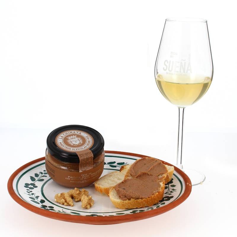 Ingredientes: higaditos de ave, faisán (22%), fumè de faisán (16%), cebolla, tocino de jamón, aceite de oliva virgen extra, champiñón, vino de Jerez, sal, huevo deshidratado, fibra vegetal, caseinato, leche desnatada en polvo, especias, azúcar, trufa (1%) emulgentes (E-412, E-450i, E-451ii y E-452i), conservadores (E-200 y E-262ii) y antioxidantes (E-301, E-331i y E-325)